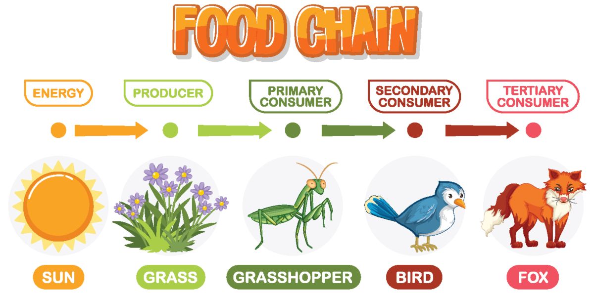 A food chain shows how energy passes from one organism to another in an ecosystem. When a buffalo feeds on grass, they obtain energy from the grass, and when a lion feed on the buffalo, they obtain energy from the buffalo. energy flows from grass to buffalo to lion.