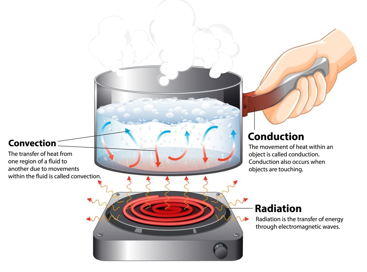 There are three main mechanisms in which thermal energy can be transferred from one object to another. These include: