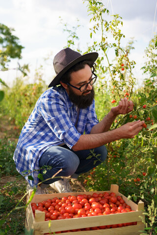 A person harvesting fruit/vegetables from a low input farm