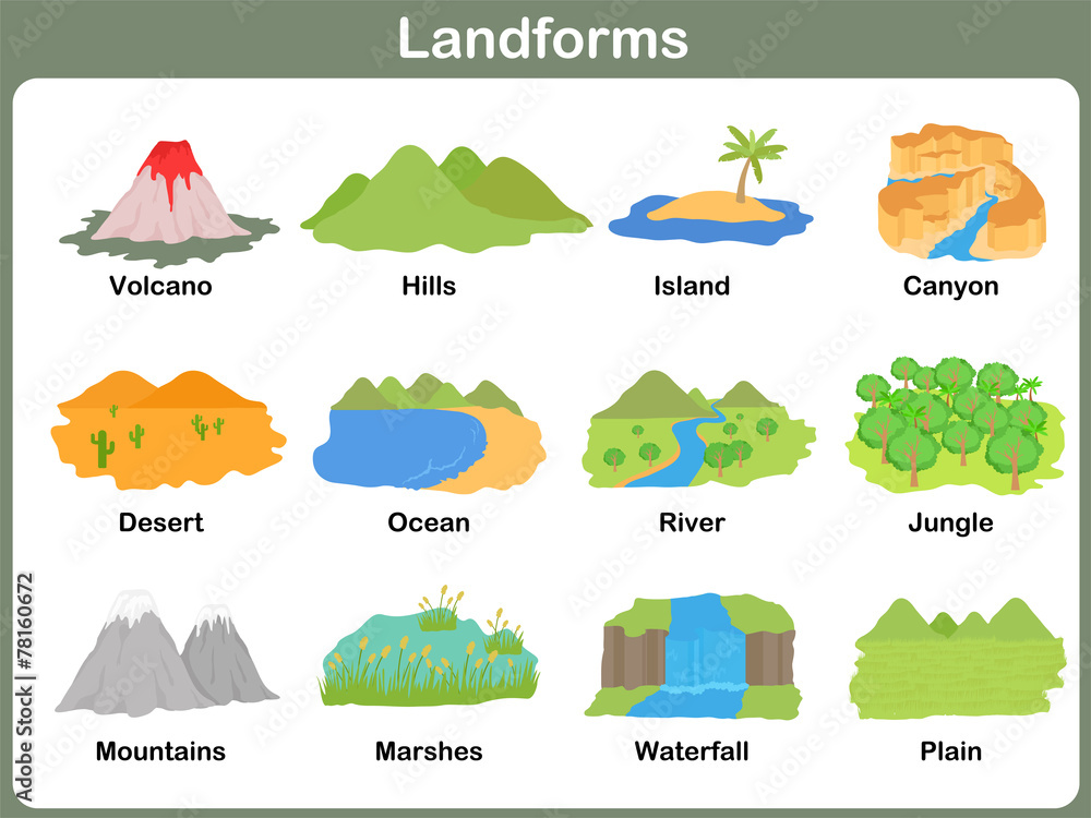 The earth also has seven great areas of land called continents. The map above shows the oceans and continents. Maps usually have a key that shows what a map’s colors and shapes mean.