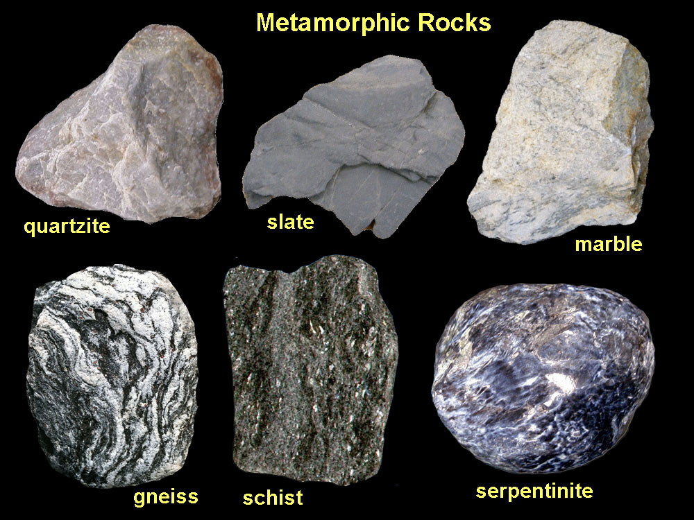 Metamorphic rocks are rocks that have changed by heating and squeezing. Deep inside the earth, the heat and pressure/weight from other rocks creates the heating and squeezing needed to create metamorphic rocks. A new rock forms with properties that are different from the original rock.