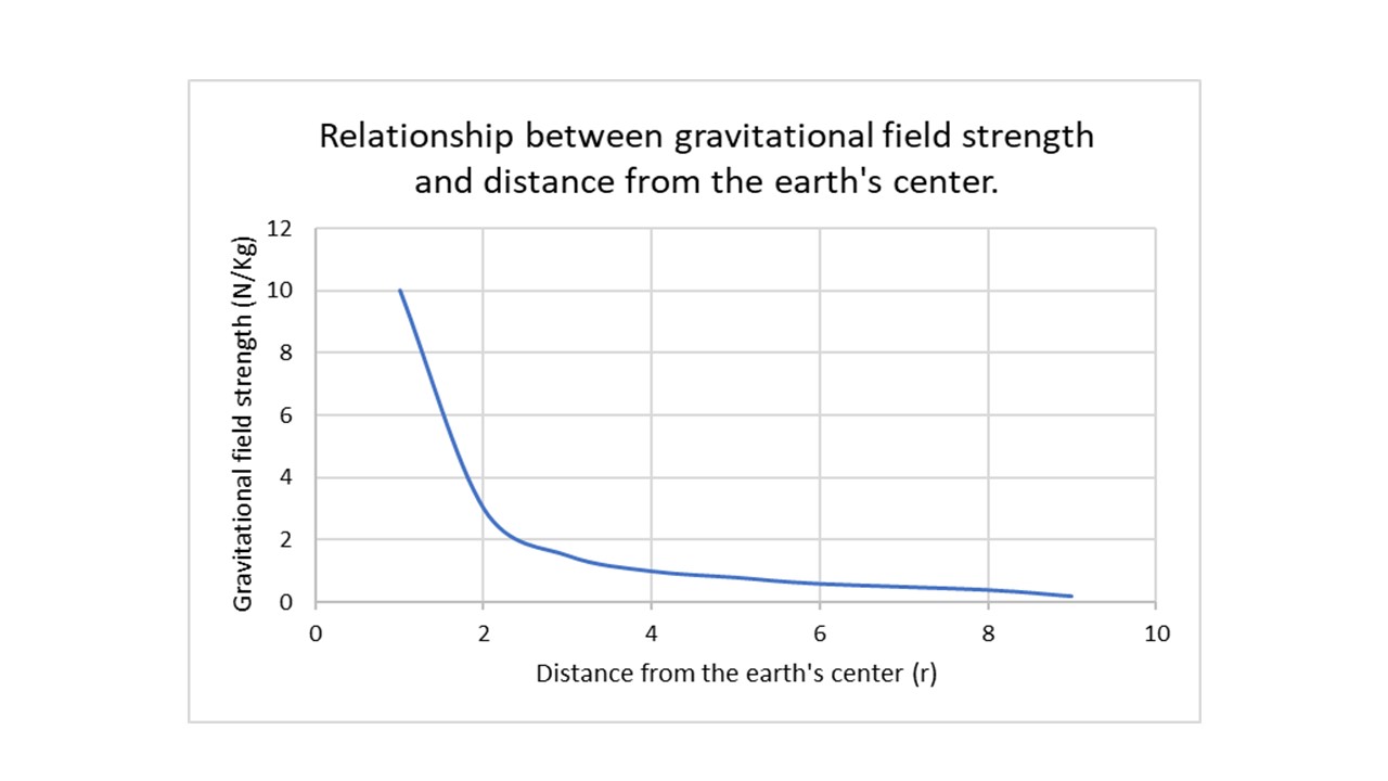 The graph shown above shows an inverse relationship between the g and r that can be expressed using the formula g ∝ 1 / r 2