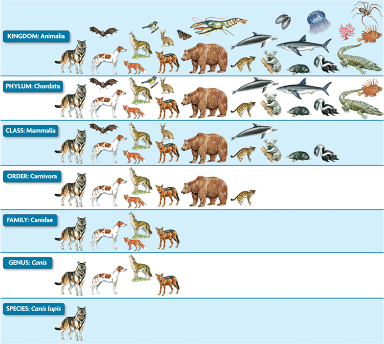 Organisms have different names in different communities and different languages, so to make it easier for scientists, there is need to develop a naming system that will be universal. Linnaeus developed a naming system that combines the genus and species name to form what is now referred to as an organism's scientific name. Most genus and species names are derived from Latin. For example, the name Canis familiaris desribes all domestic dogs. Canis is the genus name, familiaris is the species name.