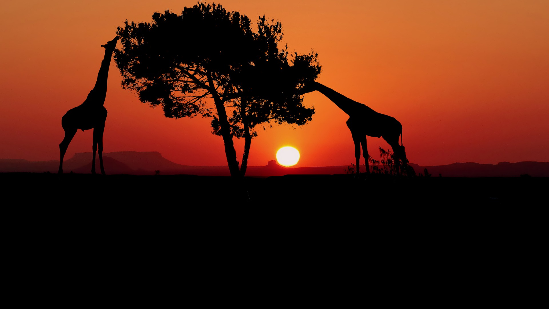 Giraffes have long necks that help them reach leaves in the tops of trees.
